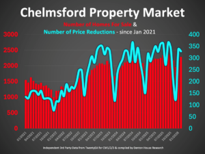 In 2021, Chelmsford averaged around 135 price reductions per month. Today that number has risen to 333 each month.