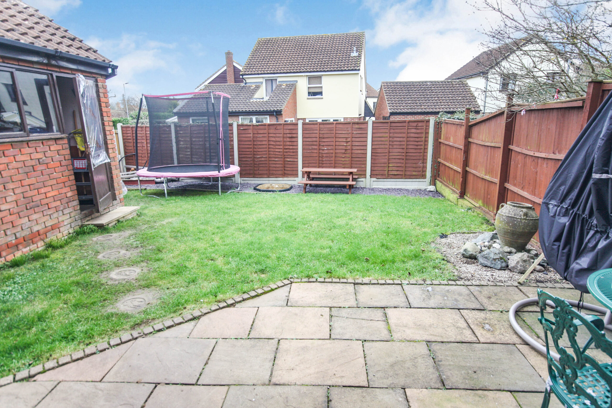 REAR GARDEN Patio area with majority laid to lawn. Enclosed by panel fencing. Personal door to garage.