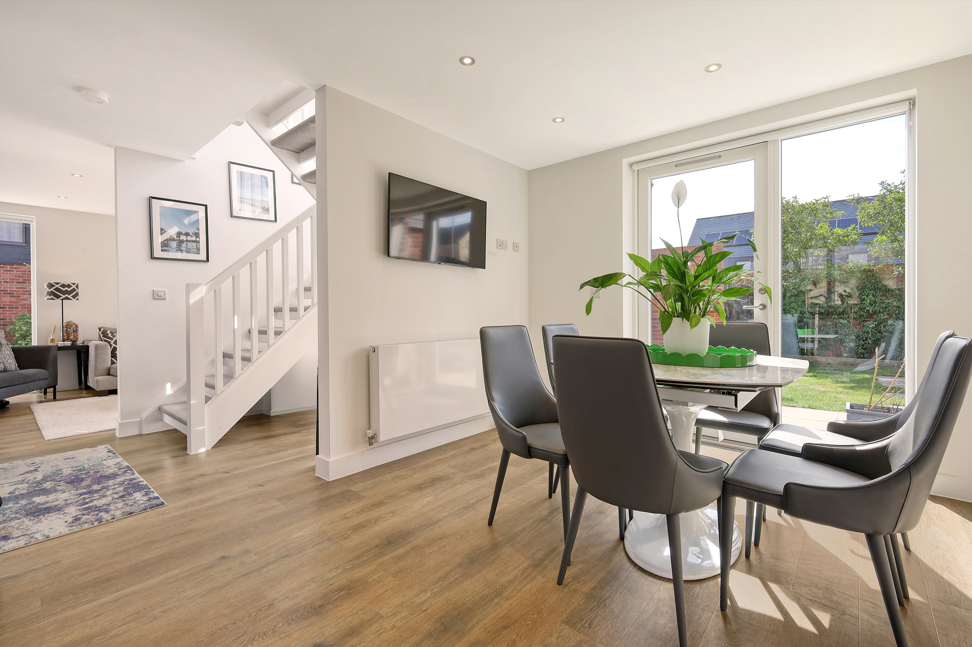Upon entering the light and airy entrance hall, directly in front of you, are stairs that rise to the first floor landing and an under stairs storage area, immediately to your right, is the cloakroom, and to the left, is a large storage cupboard which currently houses the washer/dryer, from the entrance hall there is access through to the lounge which has a door to the rear garden and air conditioning unit, also from the entrance hall there is access to the open plan kitchen/diner which has a fully fitted kitchen and a door to rear garden. The spacious first flor landing gives access to the family bathroom and three bedrooms, with the principal bedroom having fitted wardrobes, air conditioning unit and an en-suite shower room. Externally, the rear garden commences with a patio area with the remainder being laid to lawn, garden shed and access to a secure gated parking space.