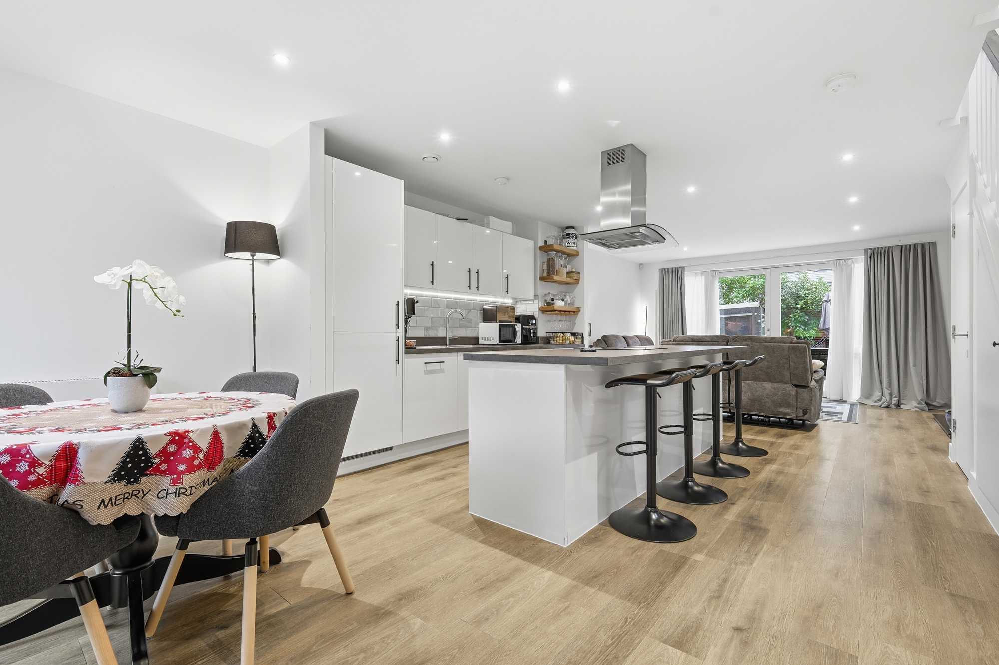 You enter this property straight into the open plan accommodation, which comprises of a dining area to the front, lounge area to the rear which has a wall mounted air conditioning unit and also overlooks the rear garden, the central kitchen area has a selection of base and wall mounted storage units, real italian marble tiling, a central island, stainless steel sink unit and integrated appliances to include the fridge/freezer, dishwasher, washing machine, oven and hob with an extractor over. There are also, stairs that rise to the first floor, an under stairs storage cupboard, and a door to cloakroom, which comprises of a low level wc, wash hand basin and heated towel rail. The first floor landing has a window to the side aspect, a boiler cupboard and doors that lead to the family bathroom and the three bedrooms (two doubles and a large single), the principal bedroom has an air conditioning unit, as well as fitted wardrobes, door to the roof terrace and a separate access to the en-suite shower room, bedroom two has a window to the front aspect with loft access and bedroom three has a window to the side aspect, the family bathroom comprises of a panelled bath with shower over, low level wc, wash hand basin and a heated towel rail.