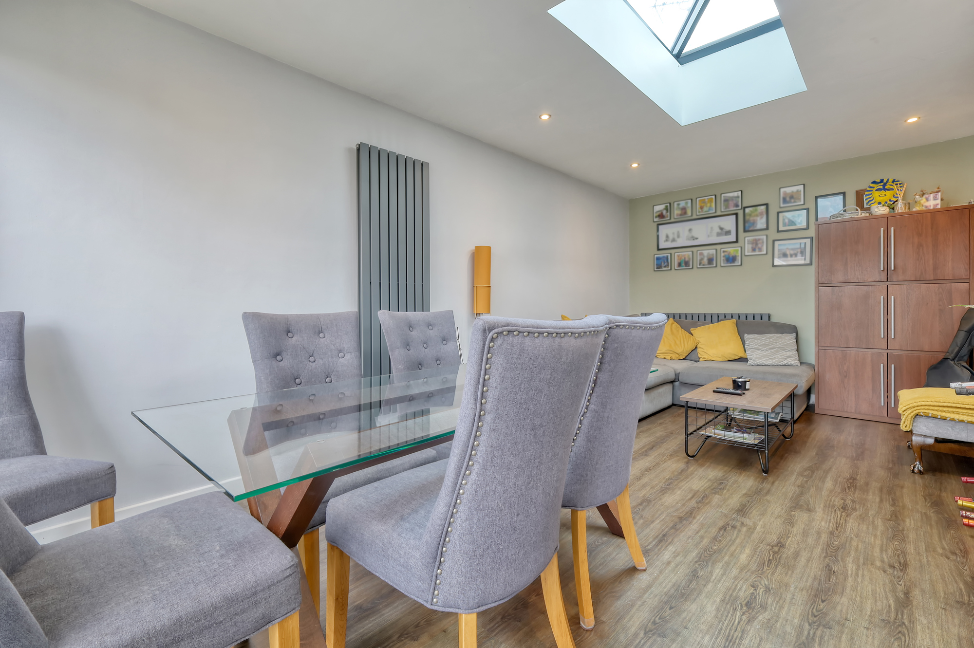 The good sized Entrance Hall has a door to the open plan living space and another to the Inner Hall from which all the other rooms are accessed. Whilst the Lounge/Dining Room is open plan to the Kitchen, they are very much distinct areas with the lounge space flowing into the dining area which then has bi folding doors opening up out to the Rear Garden. The Kitchen itself has a bright feel to it, thanks to the vaulted ceiling with Velux windows, and is fitted with a range of modern matching wall and base units, has integrated appliances and a breakfast bar.