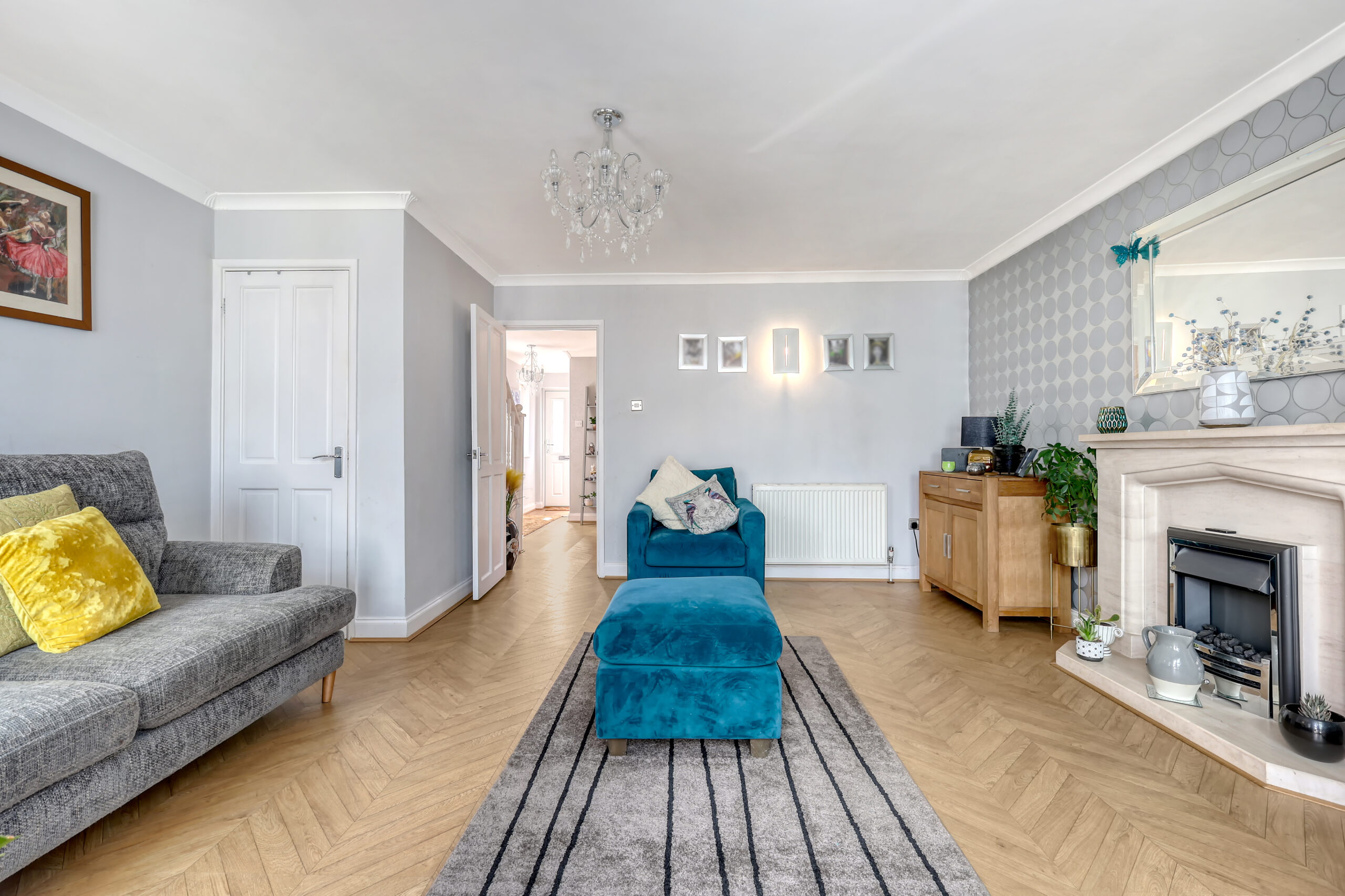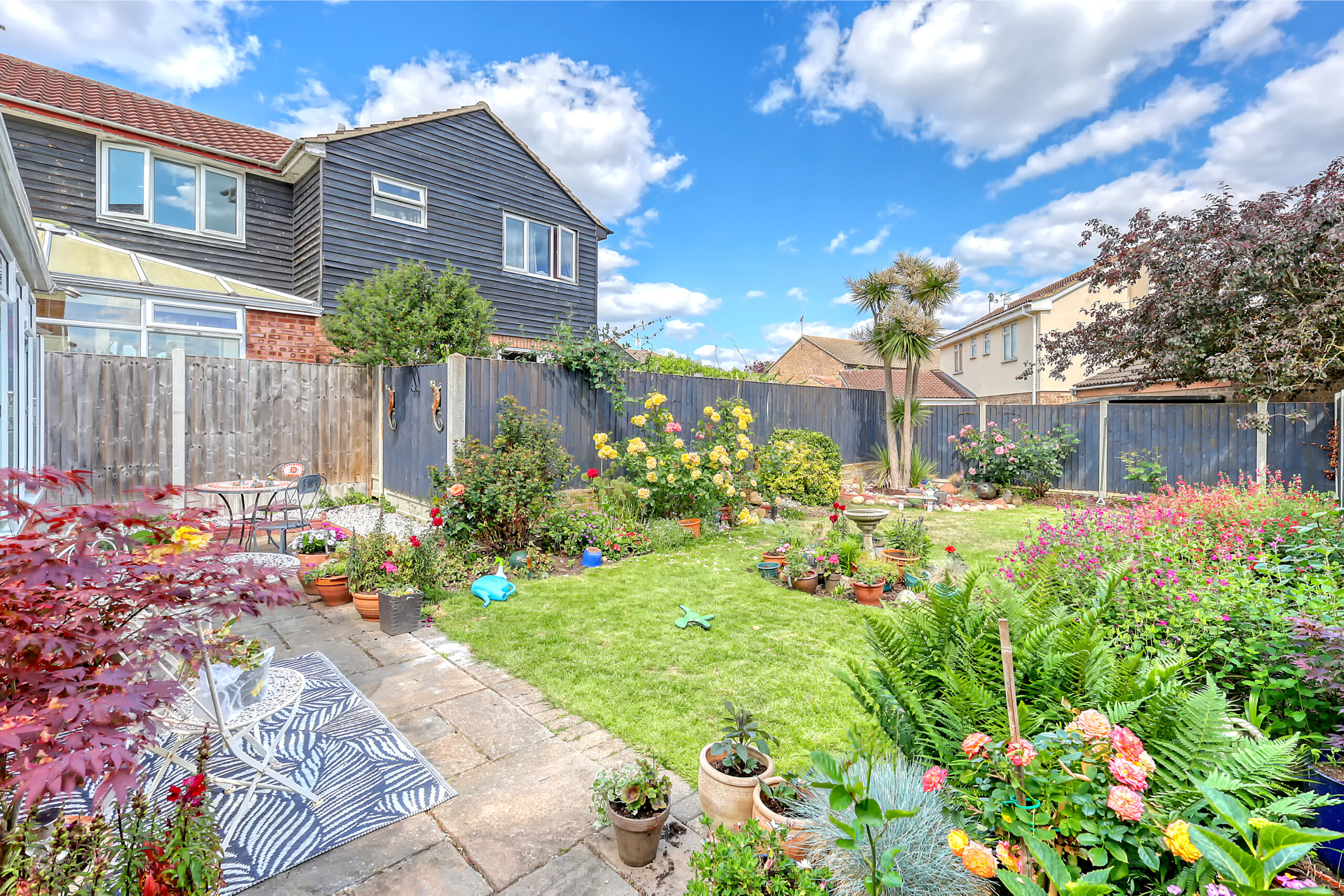 Outside, the Rear Garden has been thoughtfully landscaped. A patio seating area leads onto the lawn which is surrounded by plant and shrub borders, with a decorative centre piece. There is a side gate, meaning you can bring things in and out of the garden without going through the house and the rear of the garage can also be accessed via an up an over door, which is great for moving larger items.