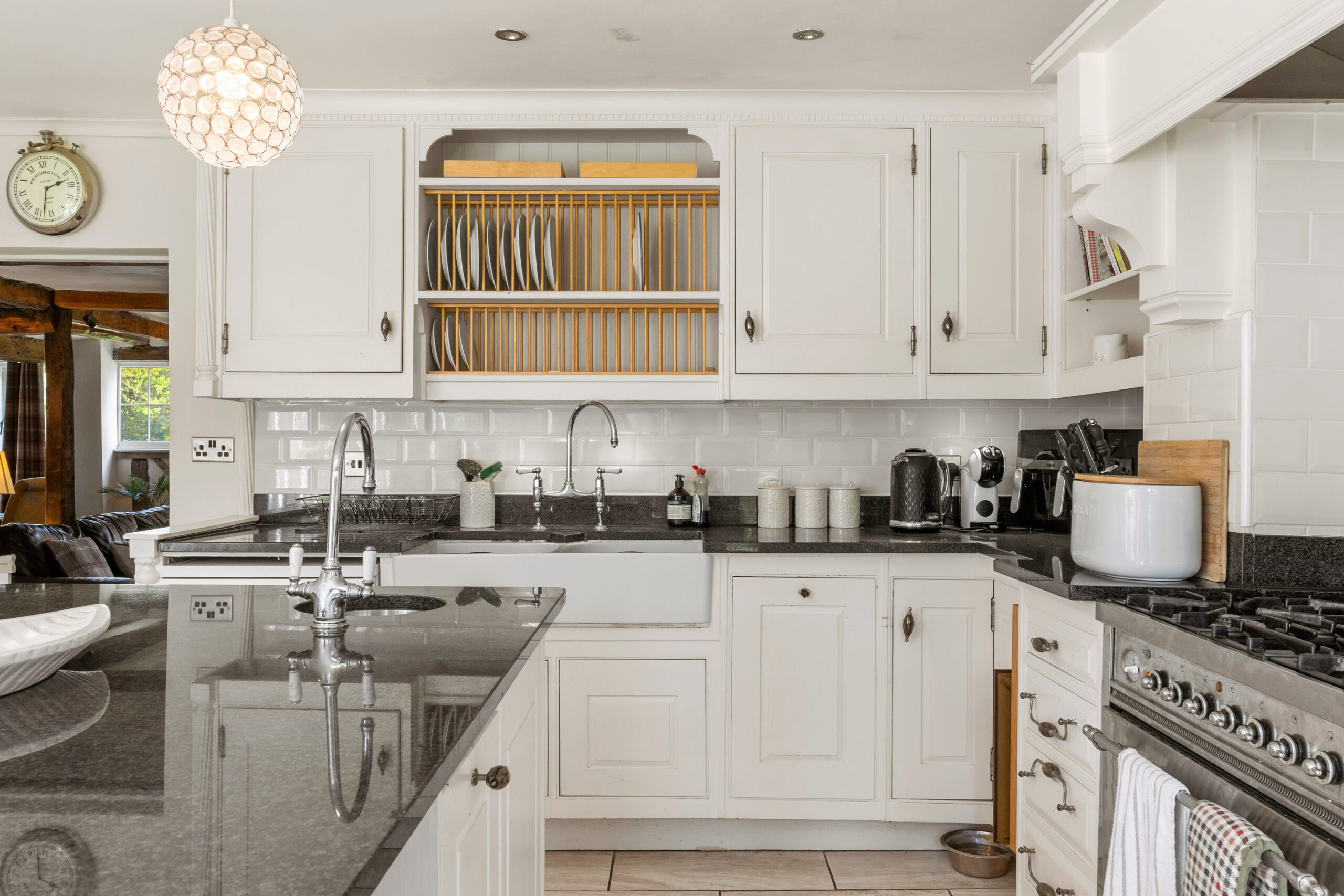 As you enter the main house you are greeted by a large and impressive living/ dining room with exposed wall and ceiling timbers, as well as substation traditional fireplace. The living room provides access both through to a large family room as well as the farmhouse kitchen all of which offers views and access out via the utility room through to the large and enclosed mature rear garden. There is a further ‘cottage’ to the side with separate kitchen, hallways and sitting rooms, this provides very flexible accommodation to add to the main home. On the First Floor (later pages) there are 5 bedrooms each providing excellent accommodation, three bathroom/shower rooms including a substantial bedroom over the cottage space below. All rooms offer either lovely views across the lane on Rands Road or over the grazing land and gardens to the rear. The mix of ability to