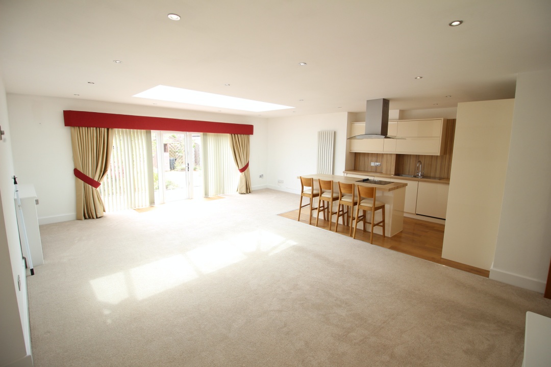- Spacious open-plan living/kitchen area with orangery-style skylight and bi-fold doors to the garden