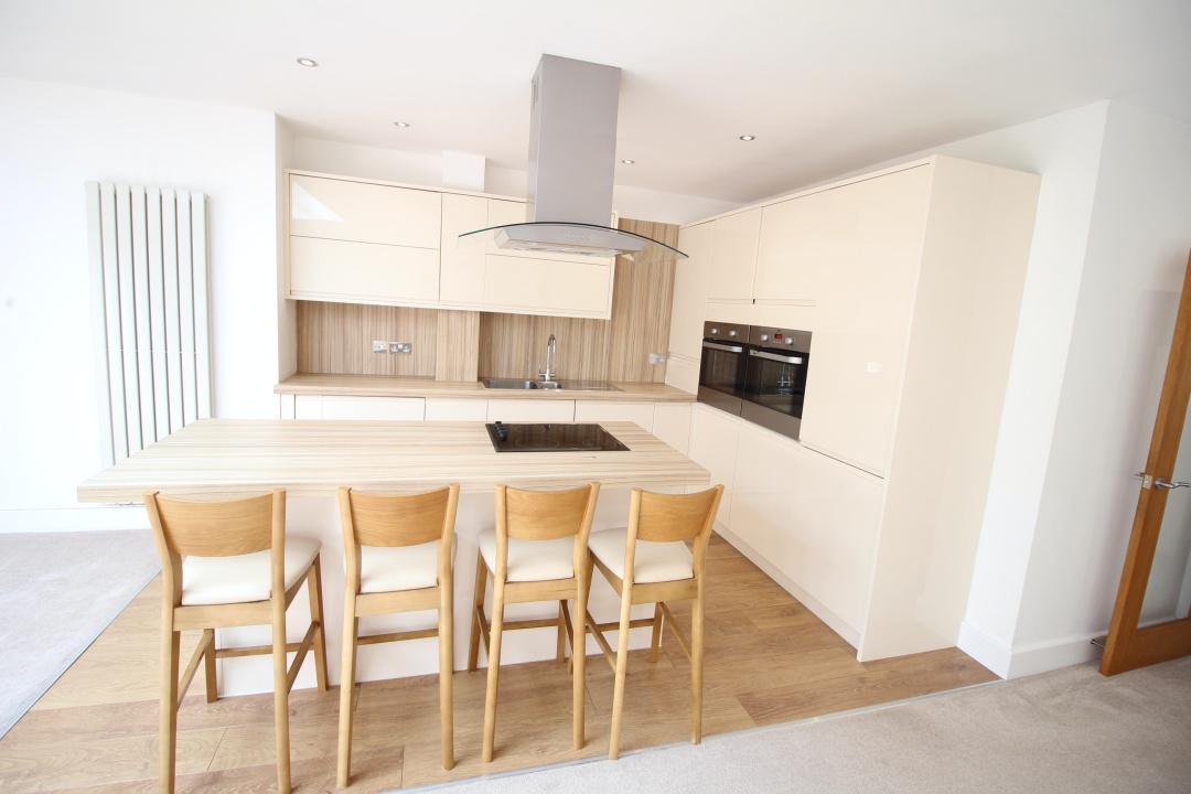 - Fully fitted modern kitchen with integrated appliances and breakfast bar