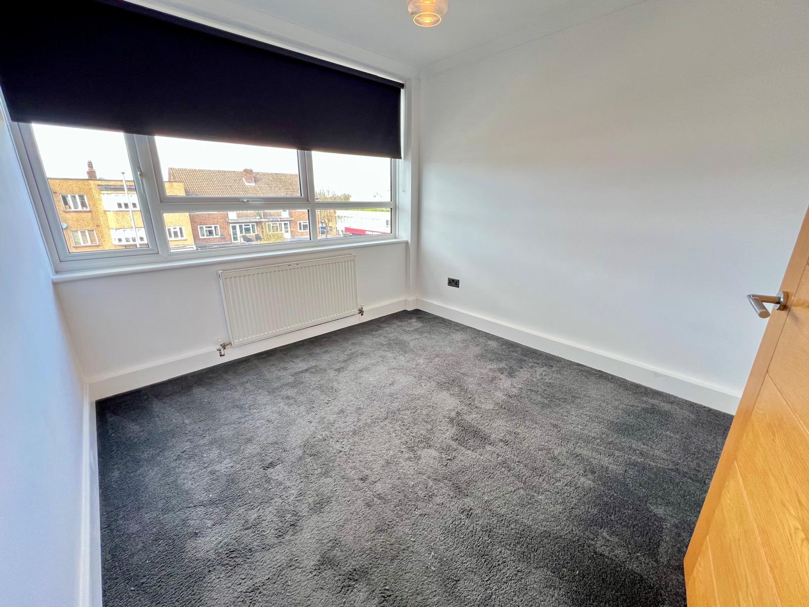 There are two well-proportioned bedrooms, both with neutral décor and grey carpeting. The bathroom is finished with a modern white suite, including a shower over bath with rain shower and thermostatic controls, vanity unit, and heated chrome towel rail.
