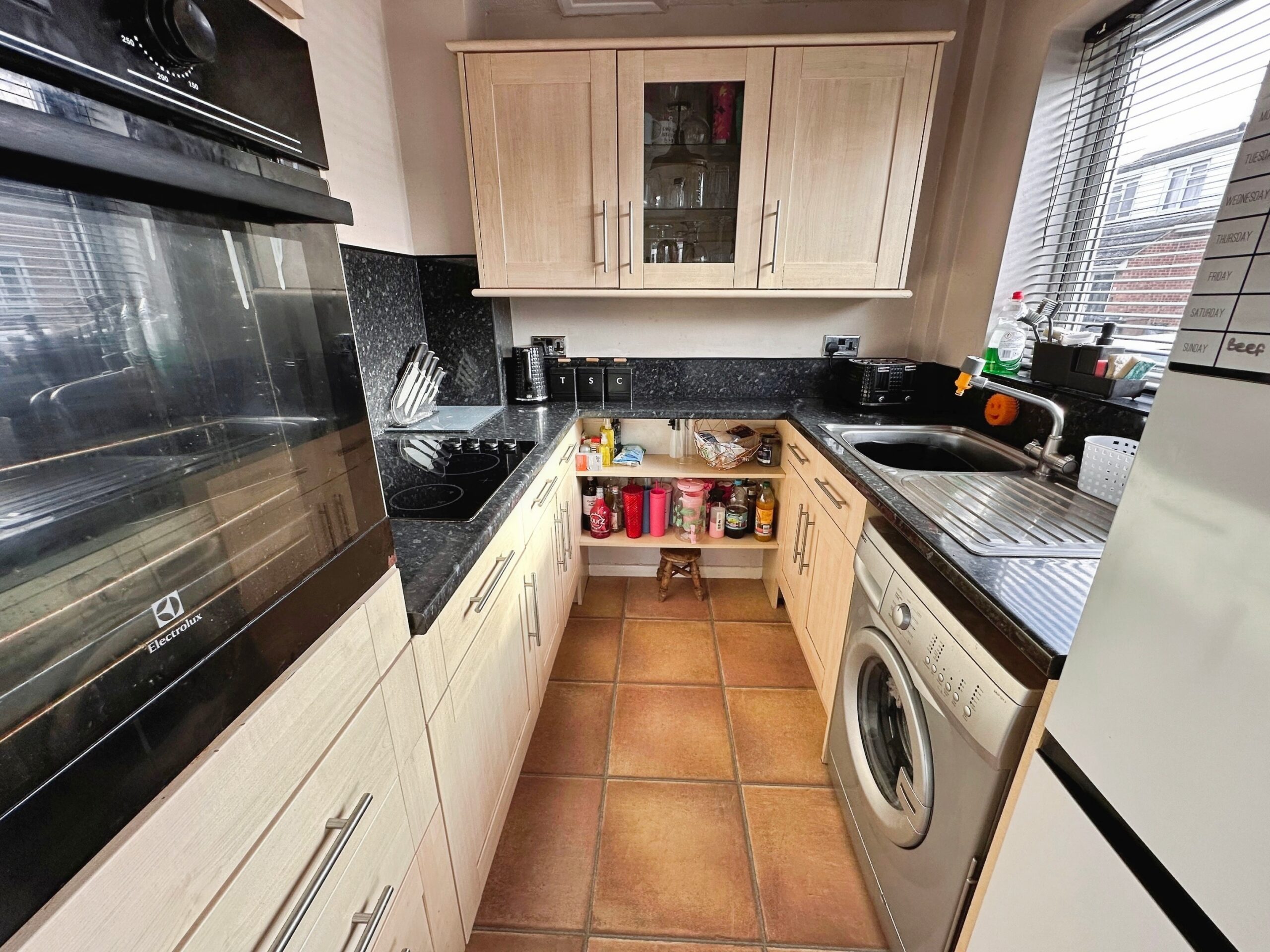 The front door takes you directly into the Lounge which has French doors opening out to the garden and flows into the Kitchen which is fitted with a range of matching wall and base units with worksurfaces over, a fitted oven, fitted hob with extractor over and spaces for washing machine and fridge/freezer.