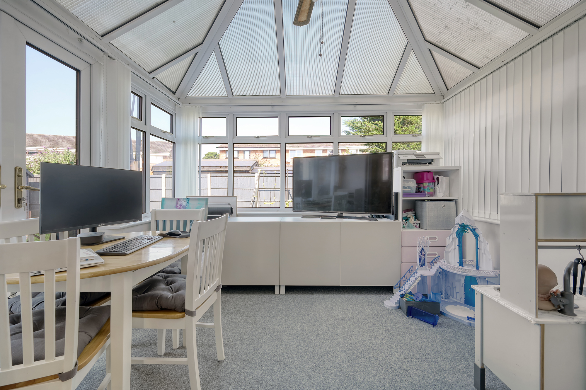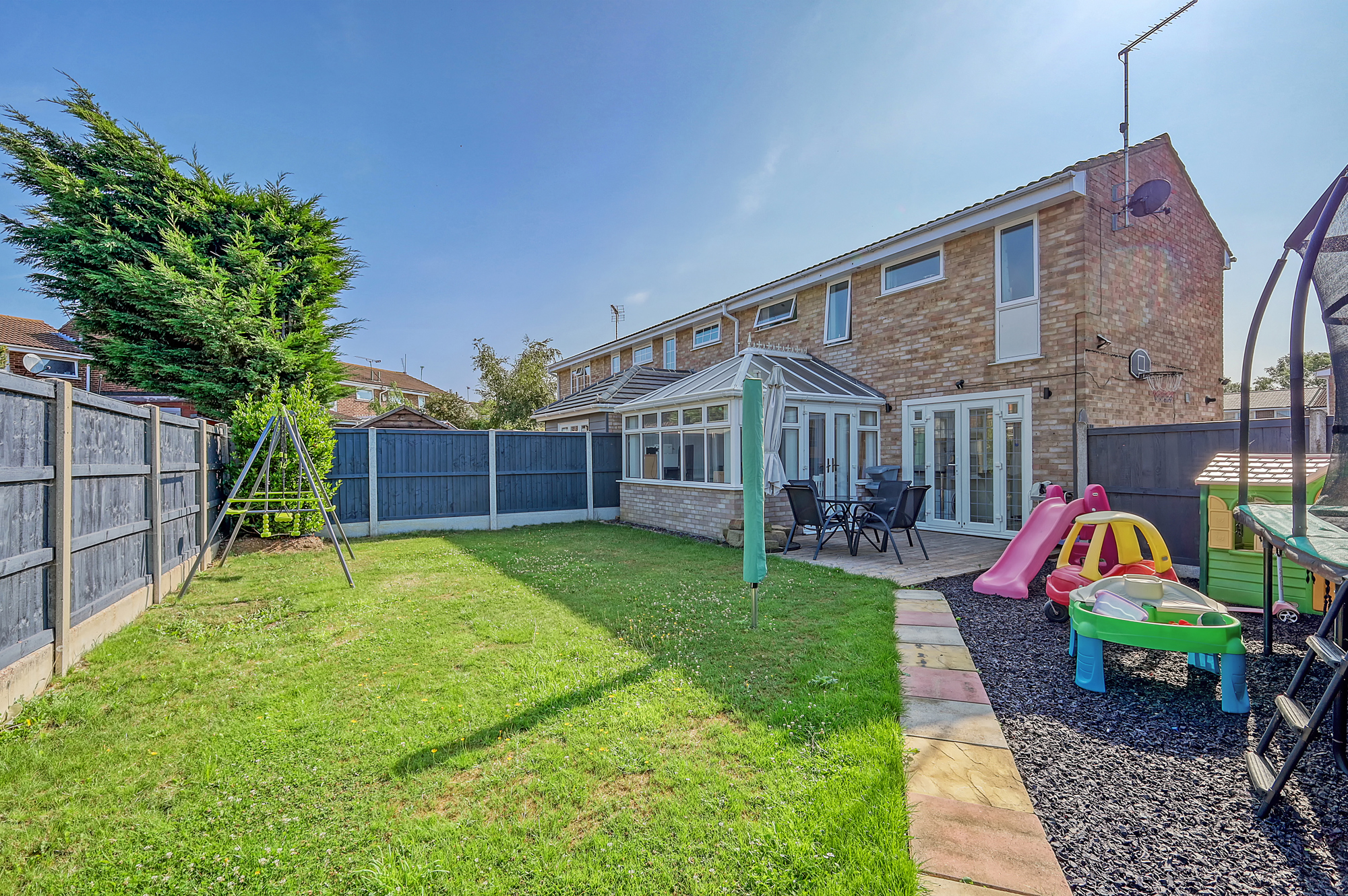 Outside, the Rear Garden is larger than the average in this area, being on a corner plot. There is a decked seating area, a 'play area' which is laid with rubber pellets and the remainder is laid to lawn. A side gate will take you to the front of the house meaning you do not have to trail things from the front to the back through the property.