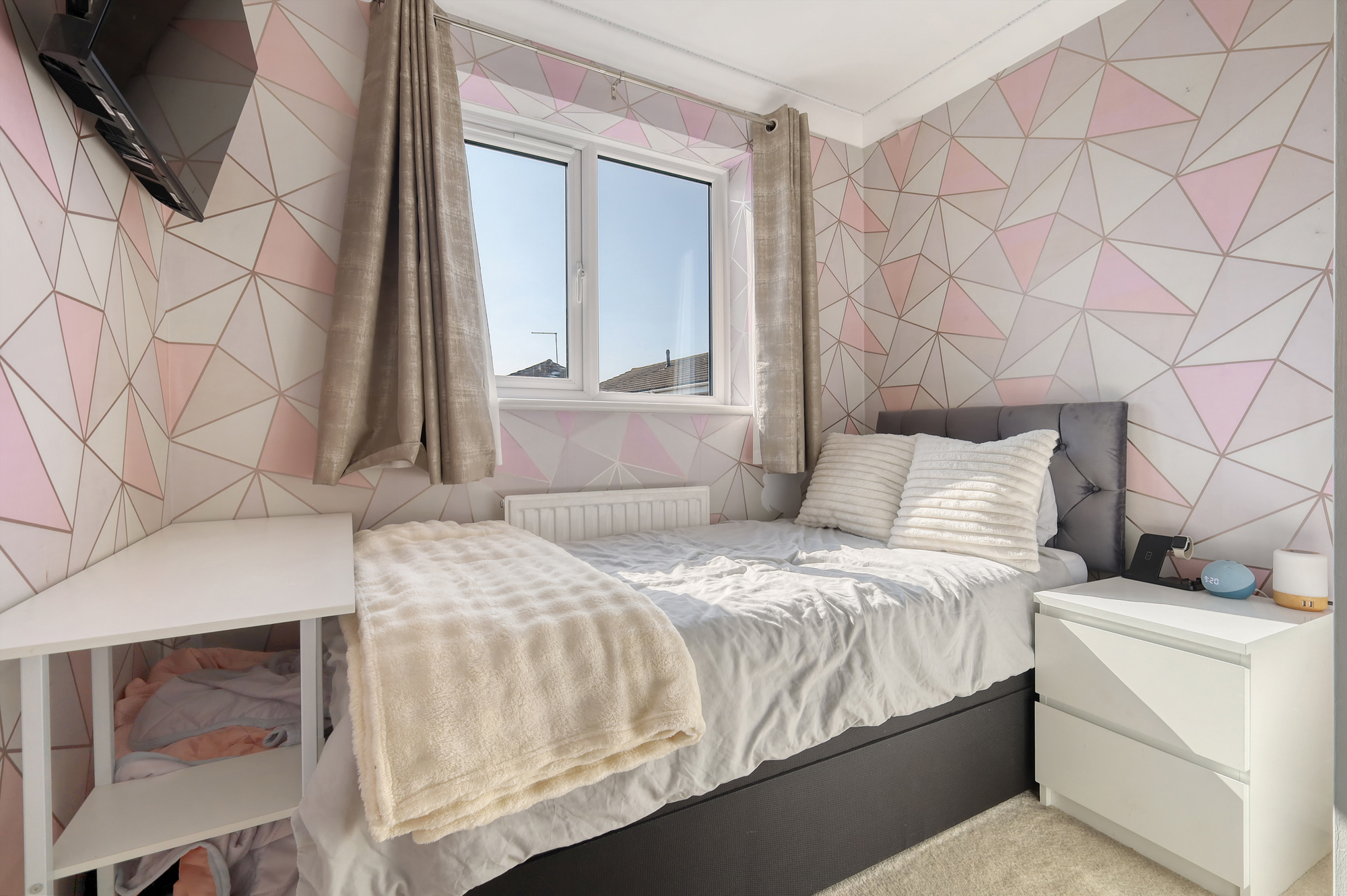 On the first floor, the extension means that there isn't a 'box room' usually found in these houses. Bedrooms One and Two both face rear, with the extended Bedroom Three facing to the front. The Bathroom is fitted with a matching white suite with shower over the bath.