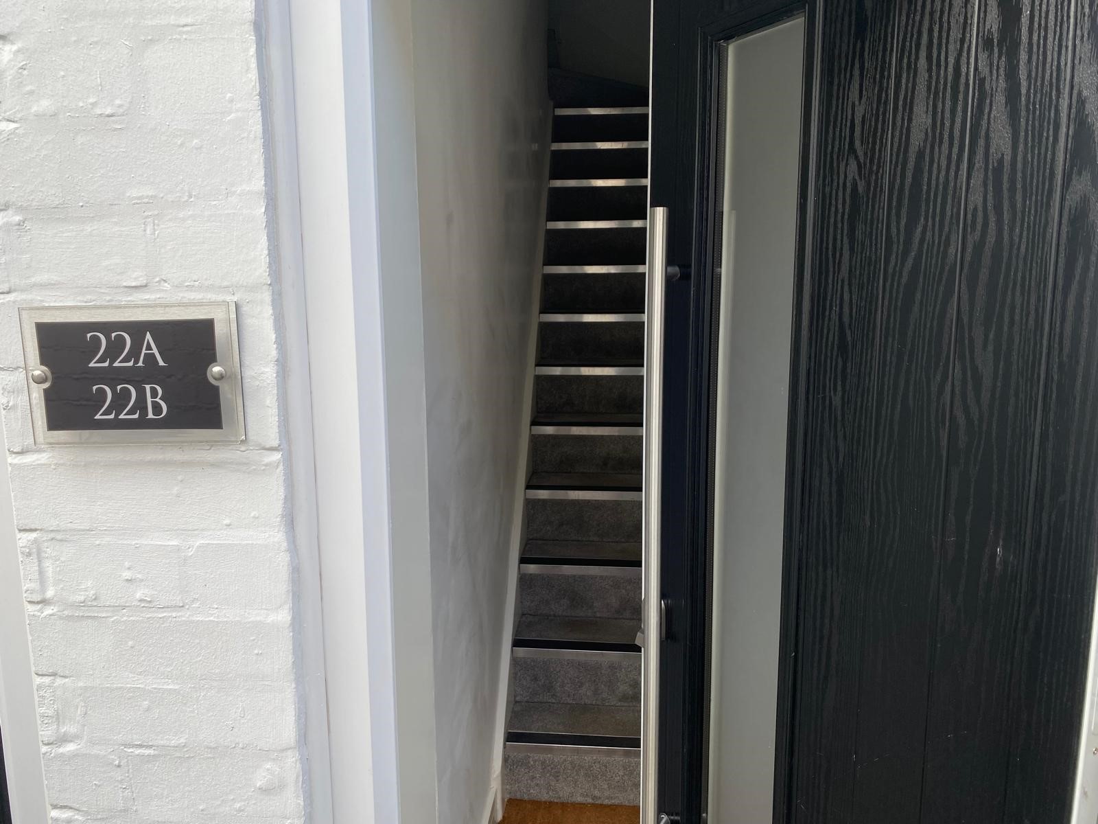 Communal Door with Carpeted Stairs to 1st Floor, private Front Door into Entrance Lobby.