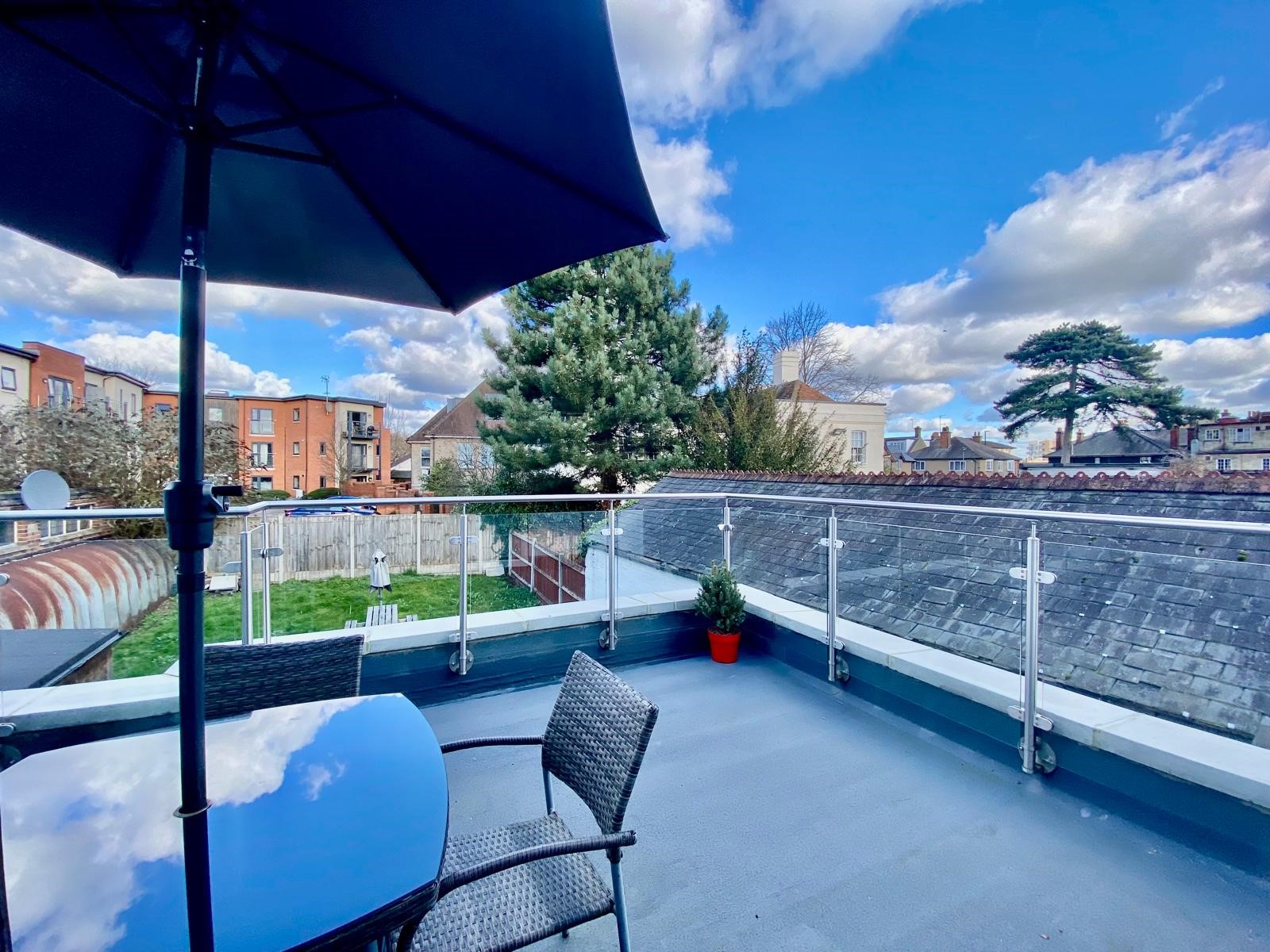 The well proportioned double bedroom provides a peaceful retreat and benefits from direct access to a private sun terrace — a rare and highly desirable feature for a city centre apartment. This outdoor space is ideal for morning coffee, evening relaxation, sun bathing or a spot of container gardening.