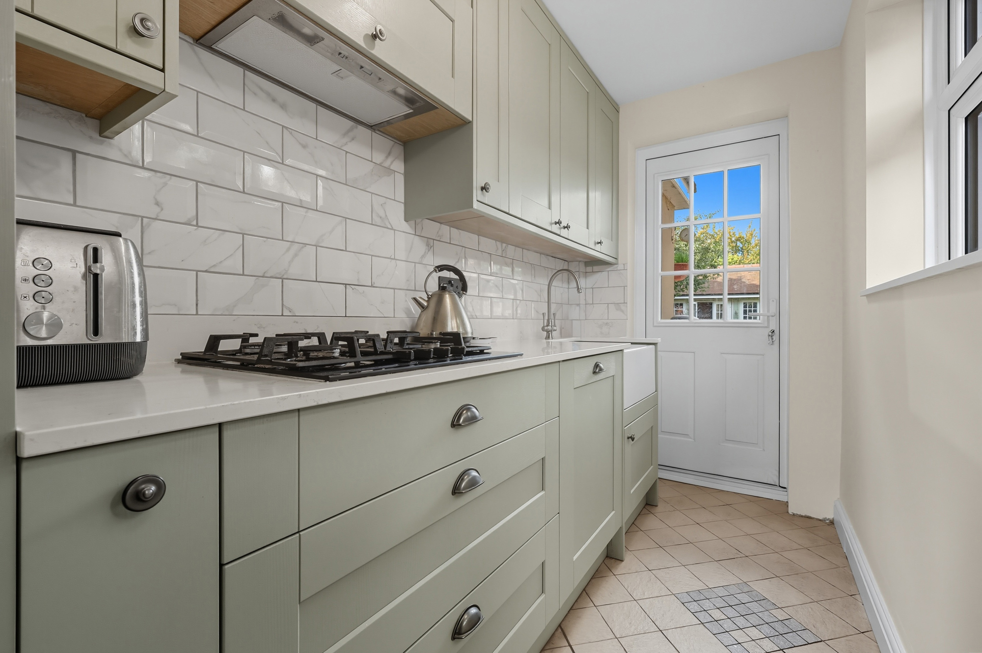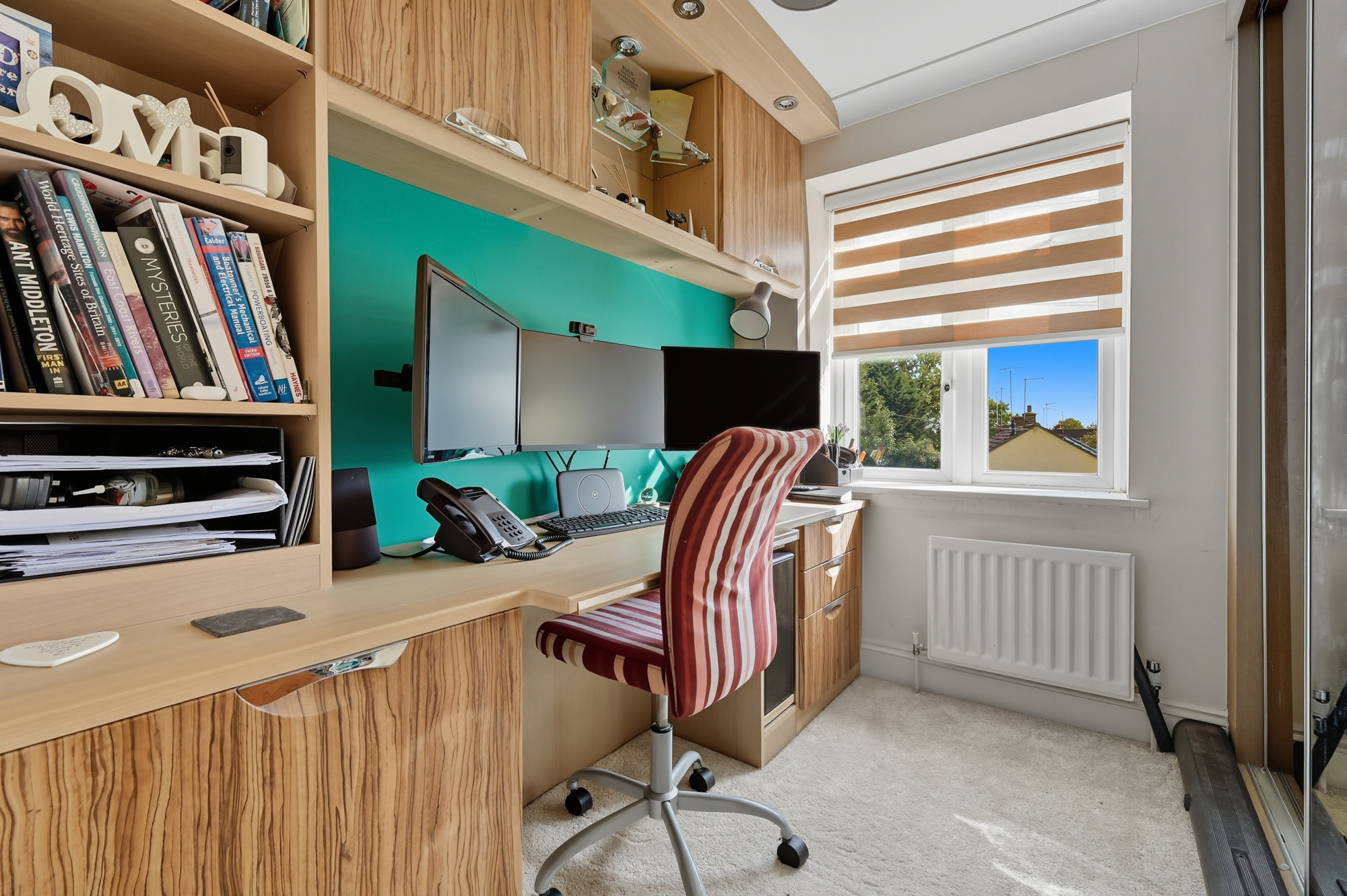 On the first floor, Bedrooms One and Two are both doubles, facing front and rear respectively with Bedroom One having a range of fitted bedroom furniture. Bedroom Three is also front facing and is a single bedroom although it is currently fitted out as a home office, making it an ideal work from home space. The Bathroom is fitted with a white suite with tiled walls and floor.
