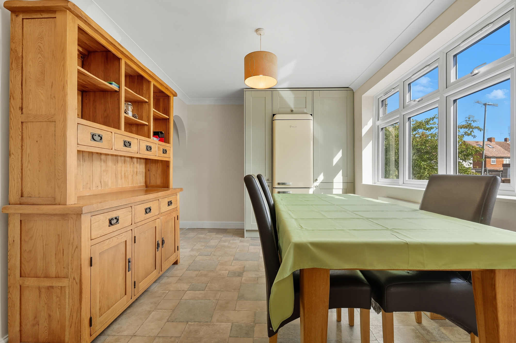 The house is accessed via a good sized Entrance Hall which has the stairs rising to the first floor, a door to the Dining Room is to the right and the the Living Room is straight ahead and is rear facing with double glazed doors opening up out to the Rear Garden. The Dining Room has windows out to the front and leads round into the Kitchen which has been refitted with a range of matching wall and base units with worksurfaces over and has a fitted oven, gas hob and dishwasher.