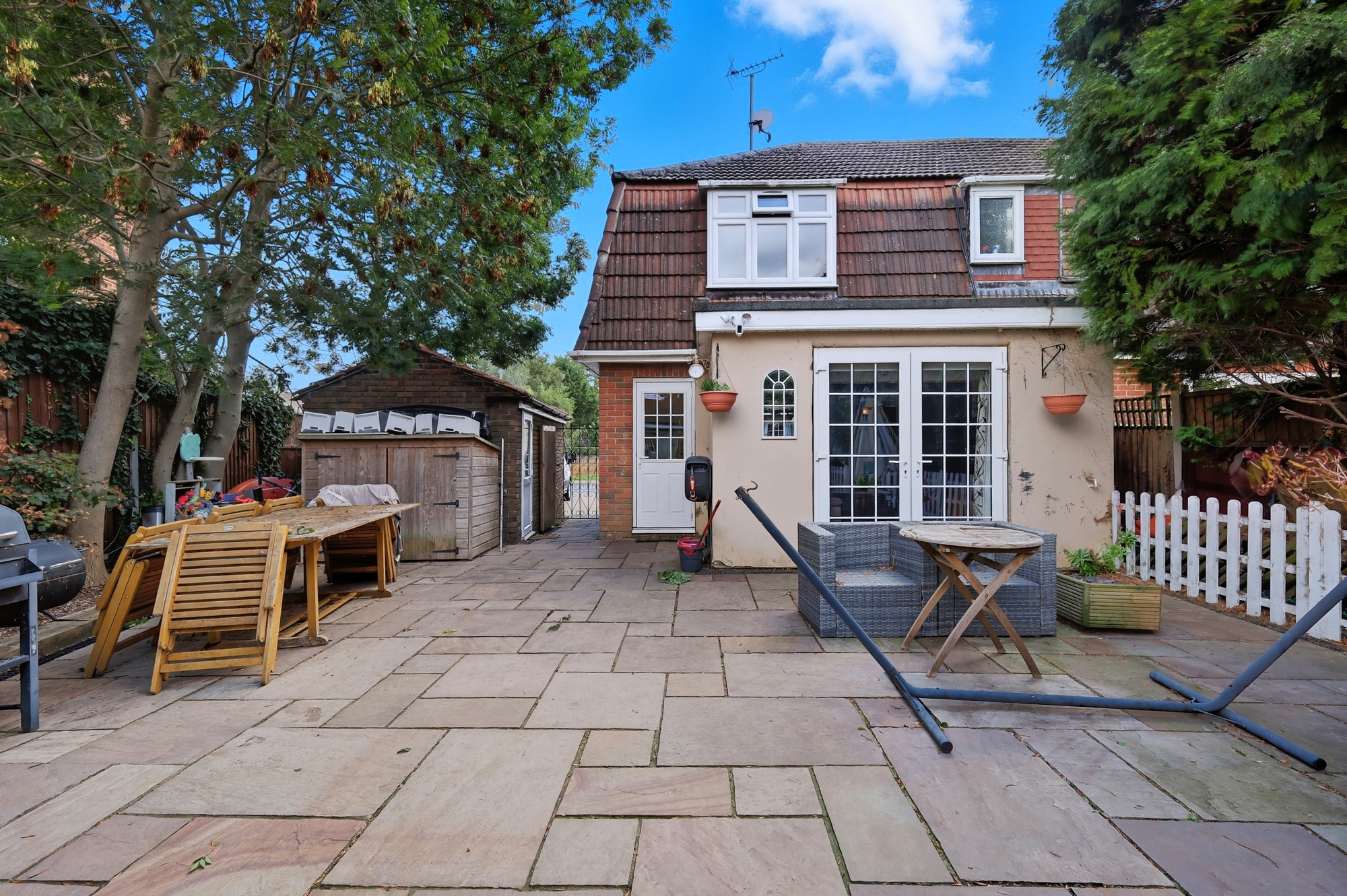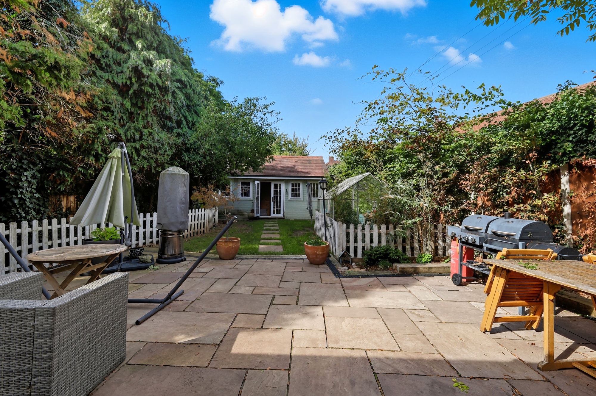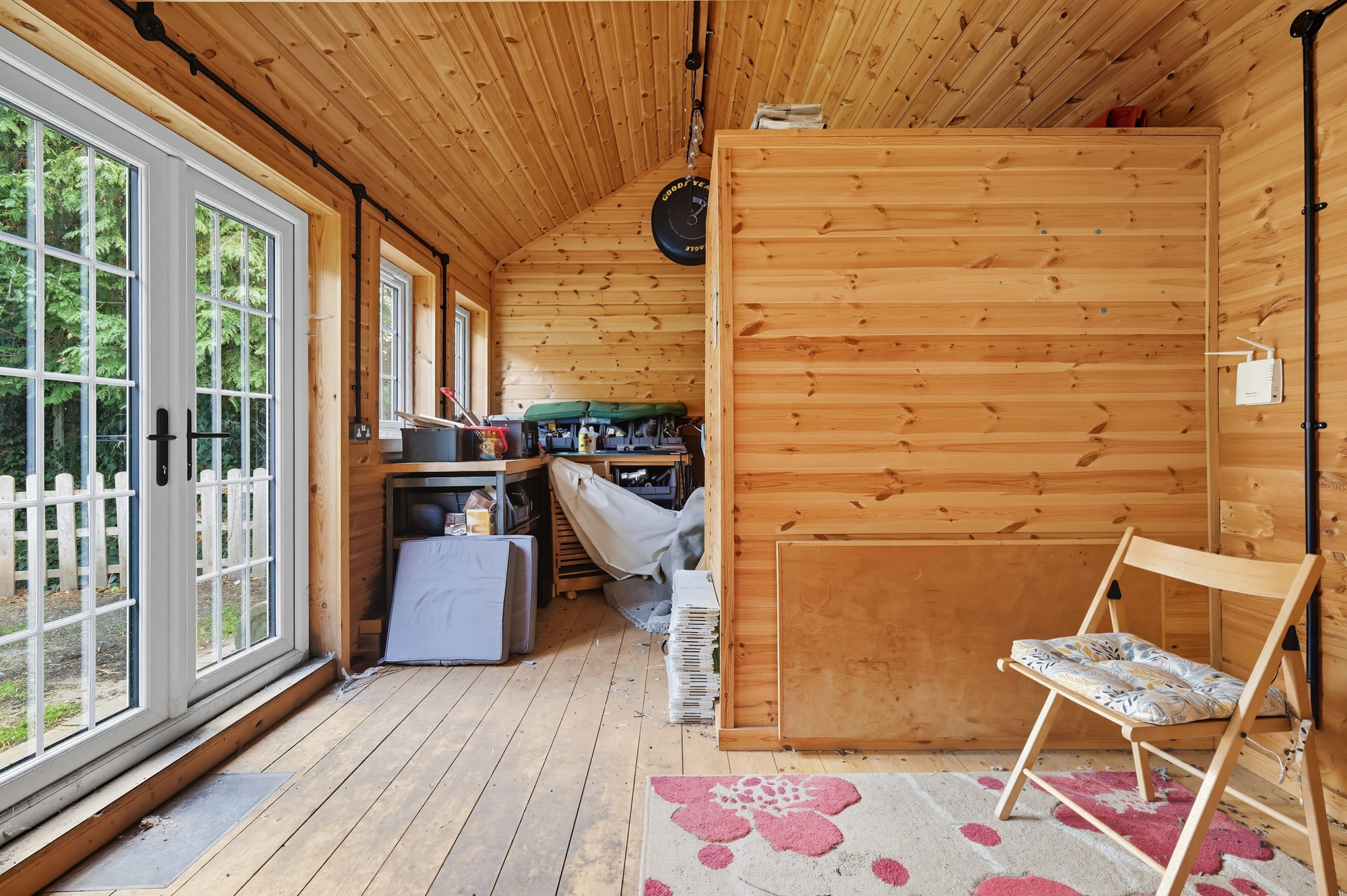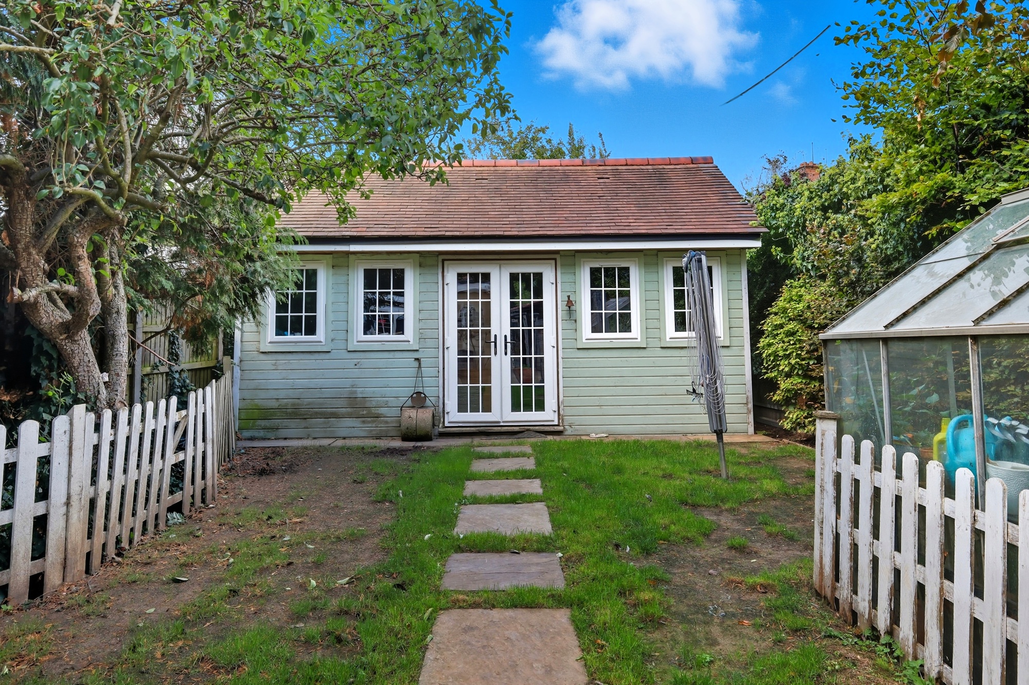 The Rear Garden has a large patio area, ideal for entertaining leading onto a lawned area with a path leading down to the Garden Room which is located at the end of the garden. This room has double glazed windows and power and light so offers a versatile space which could be used in a variety of ways including home office, home gym or children's den. There is a side gate leading out to the front meaning that you can bring things (or dogs) in and out of the garden without having to go through the house.
