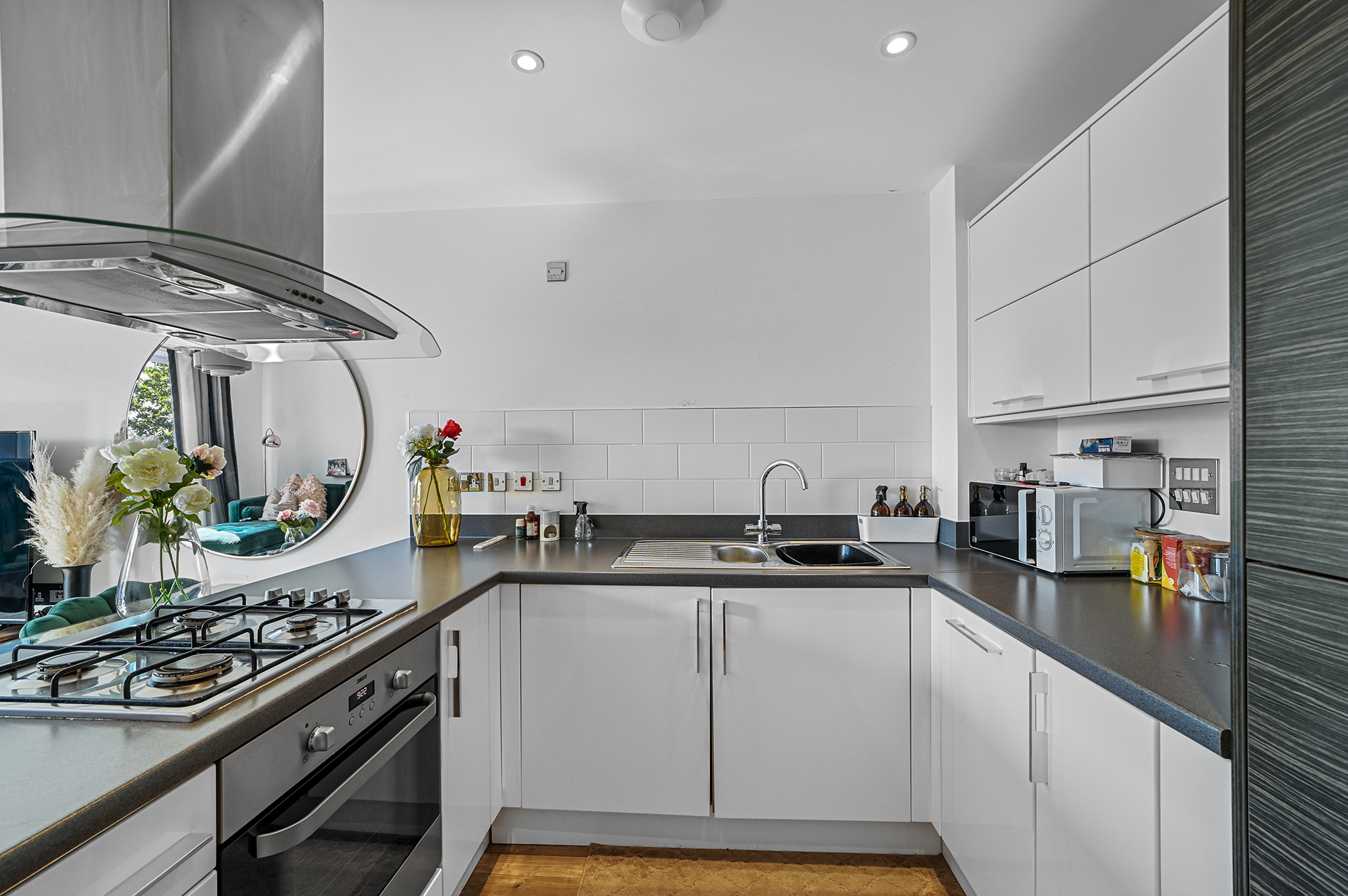 The apartment has a large open plan Lounge/Kitchen area which is a great space for relaxing and entertaining family and friends. It is large enough to have a dining table and the kitchen comes equipped with an integrated oven & hob, fridge/freezer and washing machine. The Lounge leads on to the Private Balcony area which is great to enjoy during the summer months.